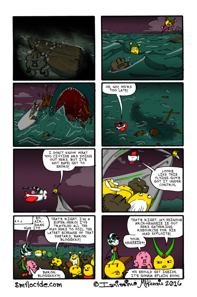 Yep, the Rabslimp is smashing stuff! Also, ANOTHER super-hero is doing Mecha-Smiles’ heroing for him! What is it all building up to?!?!?!Ianissimo McKenzie the previous comic the next comic surprise me! The first one the latest one archive